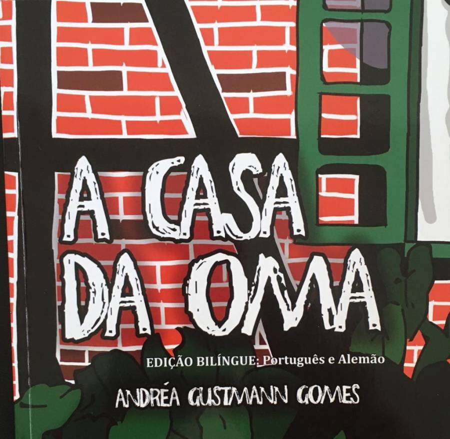O livro A casa da Oma, escrito por Andréa Gustmann Gomes, com ilustrações de MOliver e João Francisco Steilein tem na capa inicial o título do livro, o nome da escritora e a frase indicando “edição bilíngue: português e alemão”, e na capa final, seguindo o mesmo padrão da ilustração da capa, há um fundo de tijolos à vista, dando a possibilidade de imaginação de um muro ou uma casa, uma foto da escritora e uma pequena biografia. Na página 7 é apresentado ao leitor o “roteiro de viagem”, um sumário, sobre o conteúdo do livro: a biografia da escritora, duas páginas sobre a casa da Oma, uma página sobre a cidade de Pomerode, e oito páginas nas quais estão a história propriamente dita - da página 21 a 47; e das páginas 49 a 74 a história está escrita em alemão: “Das haus von Oma”. Ao apresentar a cidade de Pomerode, Andréa vai convidando o leitor a degustar dos sabores, a conhecer a língua dos emigrantes, inserindo o leitor na história da cidade, e convidando-o a conhecer Pomerode e sua cultura.