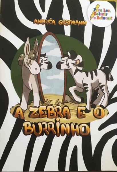 O livro A zebra e o burrinho, escrito por Andréa Gustmann, tem ilustrações de Helen Indalêncio Gomes e foi publicado pela chancela da Editora AmoLer. Na capa inicial do livro há a ilustração de uma zebra se olhando no espelho, um burro escondido parcialmente atrás do espelho, o nome da autora, o título do livro e uma espécie de carimbo indicando: “Para ler, colorir e brincar!”. O livro tem 36 páginas e narra a história de uma zebra triste que não tinha amigos de sua espécie - zebra, era uma “zebra solitária”. O macaco, o leão e a girafa até tentaram chamar a zebra para brincar, mas ela não quis. Eles então pintaram listras pretas no burro, que ficou bem parecido com uma zebra. O burro (pintado) e a zebra brincaram o dia todo, e a zebra teve um dia muito feliz. Mas uma chuva removeu a tinta do burro, e a zebra voltou a ficar triste. A final, amigos precisam ser iguais? E esta é a reflexão do livro. Na página 34, o livro apresenta a brincadeira das 7 diferenças; na página 35, ensina uma maneira de fazer a zebra e seus amigos da história com material reciclado; e na página 36, há a proposta de recortar e montar a zebra no papel. Na capa final do livro há uma opinião da ilustradora sobre o e uma fotografia que se deduz ser da ilustradora. Não há dados bibliográficos das autoras.