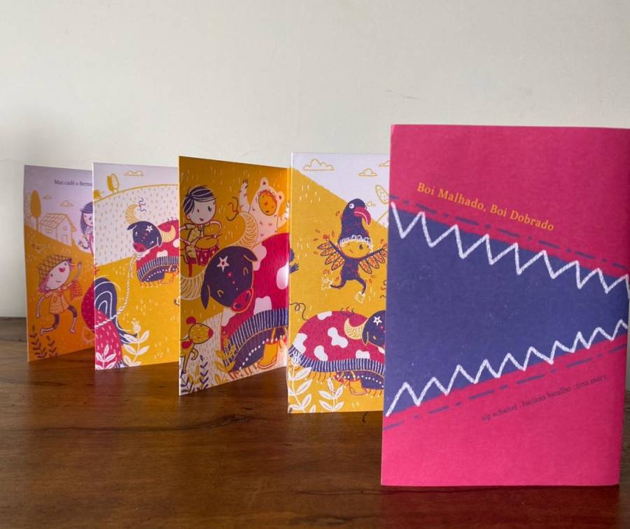 Boi Malhado, boi dobrado, de Sig Schaitel com ilustrações de Luciana Bicalho e projeto gráfico de Tina Merz, foi publicado em 2019 pelo Fundo Municipal de Cultura de Florianópolis, e seus 2000 exemplares distribuídos entre os leitores das instituições de Educação Infantil da Rede Municipal de Educação do mesmo município.