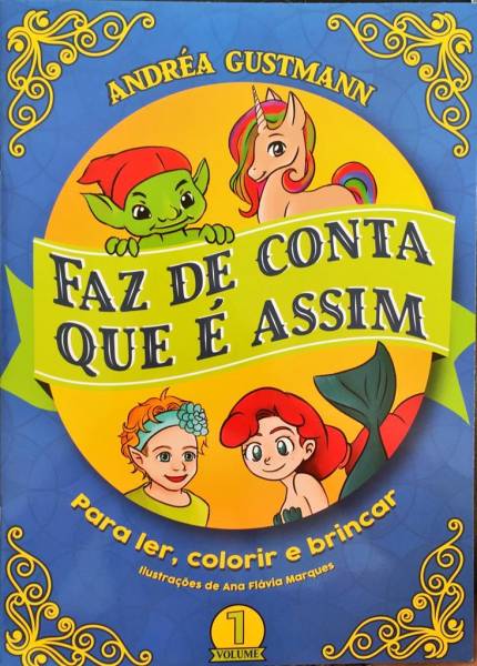 O livro Faz de conta que é assim traz duas histórias de Andréa Gustmann e duas histórias de Neida Rocha. O livro é da editora AmoLer e as ilustrações são de Ana Flávia Marques. O livro tem duas capas iniciais, ou seja, a mesma capa é usada para ambas as histórias, só modificando a indicação de início. Quando o leitor chega na metade do livro, precisa mudar a direção de leitura e iniciar do outro lado, virando o livro. Na capa vem o nome da escritora, o título da obra, o nome da ilustradora, a indicação de ser o volume 1, e uma frase Para ler, colorir e brincar”. A ilustração da capa apresenta os quatro personagens principais das histórias contadas no miolo do livro. Na segunda e na terceira capa, estão os dados bibliográficos da obra, os contatos das escritoras e o ISBN.