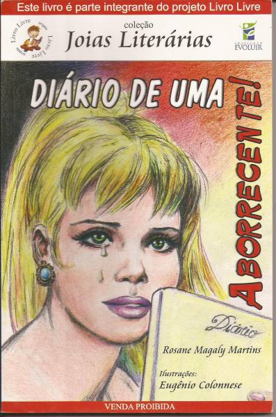 O livro Diário de uma aborrecente!,escrito por Rosane Magaly Martins, pertence a coleção Joias Literárias e é parte integrante do projeto Livro Livre, realizado pelo Instituto Evoluir e com patrocínios para a publicação. As ilustrações são de Eugênio Colonnese e a sua venda é proibida. Antes de iniciar a trama narrativa, a autora dedica uma página à explicação do que é a escrita de um diário, de uma biografia, trazendo discussões acerca de esta escrita ser ou não um gênero literário. O índice da história vem marcado pelos meses em que o diário fora escrito: seis meses, de dezembro a maio. Cada mês tem alguns dias marcados e um título.