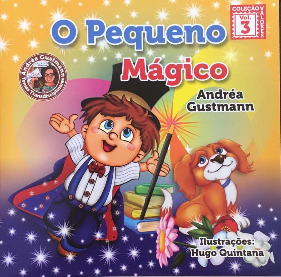 O livro O pequeno mágico, escrito por Andréa Gustmann, tem ilustrações de Hugo Quintana, e é da Editora AmoLer. Na capa inicial do livro há um selo indicando ser o volume 3 da Coleção Valores, e um destaque em forma de selo indicando ser um livro que abrange um tema transdisciplinar, junto há a uma ilustração/caricatura da autora do livro Andréa Gustmann em que a mesma segura uma folha com a sigla CLP, provável referência à Câmara Literária de Pomerode, sendo que há em letras pequenas o nome da cidade de Pomerode. Há na capa a ilustração de um menino com uma cartola, uma capa, uma varinha de mágico, um cachorro, quatro livros empilhados e flores. Na capa final, o mesmo menino aparece noutra posição junto com os livros, a cartola, as flores, a varinha e palavras destacadas: obrigado, com licença, eu te amo, me desculpe, por favor. Há também uma caixa de texto apresentando o livro ao leitor, com destaque ao uso de palavras essenciais ao desenvolvimento e interação social. Na folha de guarda há os dados de catalogação e a informação de que os volumes 1 e 2 desta coleção foram editados por outra editora.