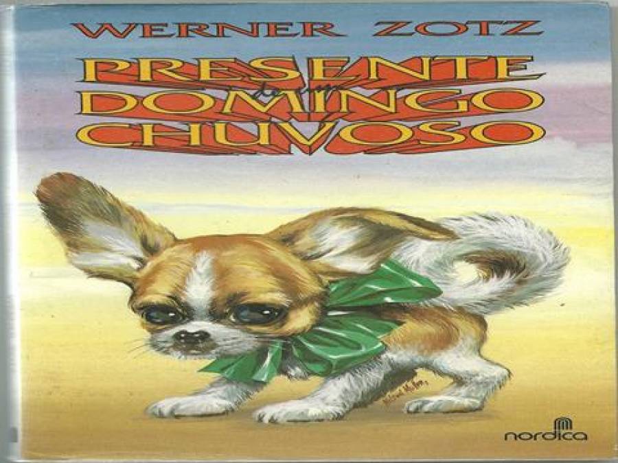 Uma surpresa inesperada, em um domingo chuvoso, iria mudar completamente a rotina e a vida de Carolina e de Henrique: o aparecimento de uma cachorrinha nas proximidades da casa na Lagoa dos Encantos, um lugar afastado da cidade, onde passavam os finais de semana. O filhote indefeso, miúdo e dócil angariou os cuidados do homem velho e da menina, que se renderam aos seus encantos e o acolheram para dentro de casa. Carolina, filha de seu José e Dona Marta, dividia os dias da semana com seu Henrique, um livreiro, o vô adotivo, no apartamento da cidade para estudar. Ao ver a dócil cachorrinha na casa de seu Henrique, no vilarejo, Carolina esqueceu-se da alergia, e passou a cuidar dela como se fosse um novo membro da família. Nas estripulias pela casa, entre pulos e pirilampos, veio a escolha de um nome: Pipoca, e assim ficou conhecida a mais nova integrante da vida desses dois. Esse é, então, o mote do livro de Werner Zotz, intitulado, Presente de um domingo chuvoso, primeiramente publicado pela editora Nordica, do Rio de Janeiro, em 1992, contendo ilustrações de Nilson Müller. A reedição veio com a publicação de seus livros pela editora Letras Brasileiras, com ilustrações de Diego Rayck. Zotz trata com muita delicadeza uma relação de carinho, de amizade, de companheirismo entre um bichinho de estimação e seus donos. O presente livro, cujo título e capa da primeira edição (e mesmo da reedição) denunciam previamente do que se trata, não é a “pedra de toque” do autor, mas traz à tona um tema pertinente envolvendo uma relação de troca e de dificuldades advindas, principalmente, com a doença [incurável] de Pipoca.